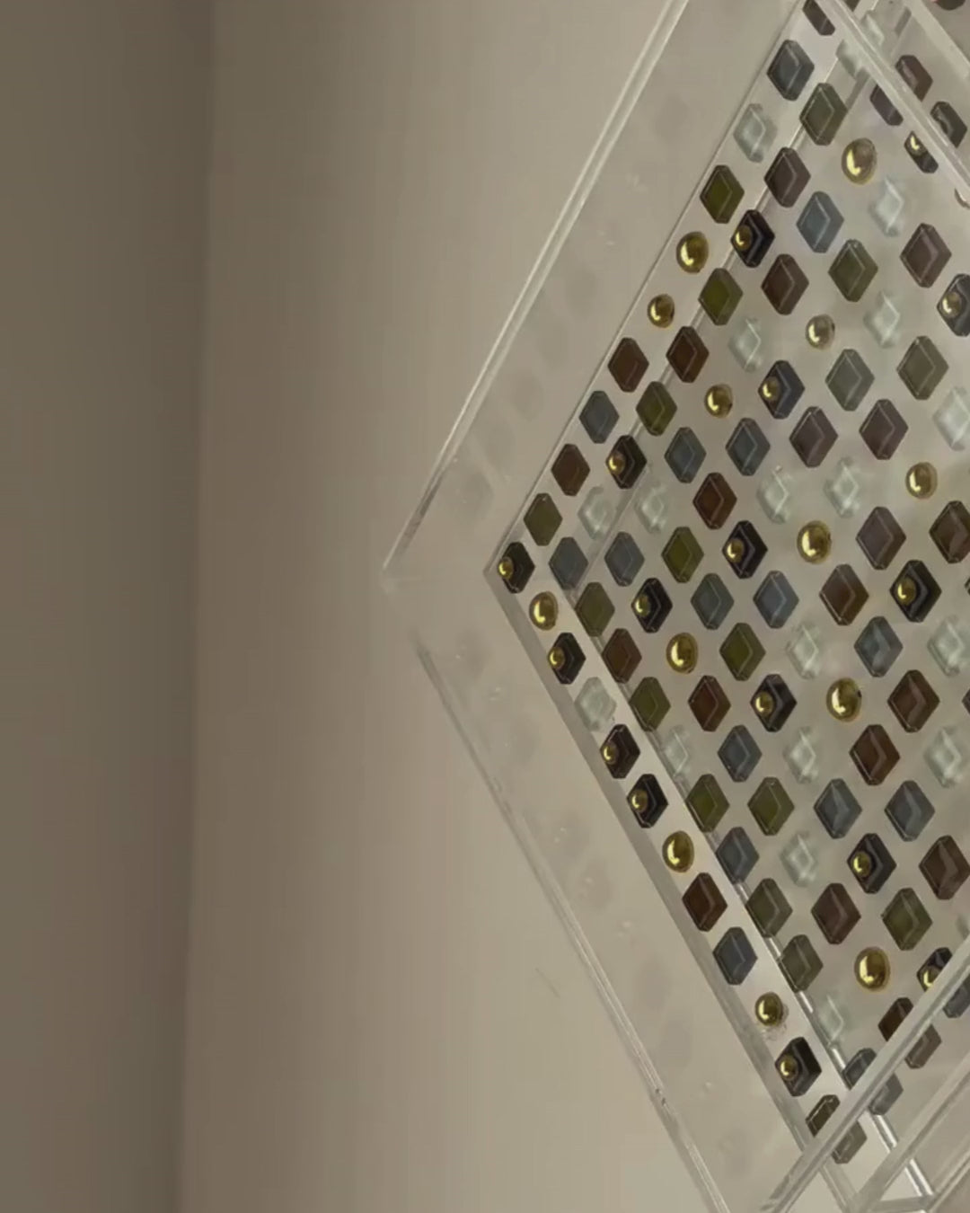 material: acrílico transparente, vidro e plástico